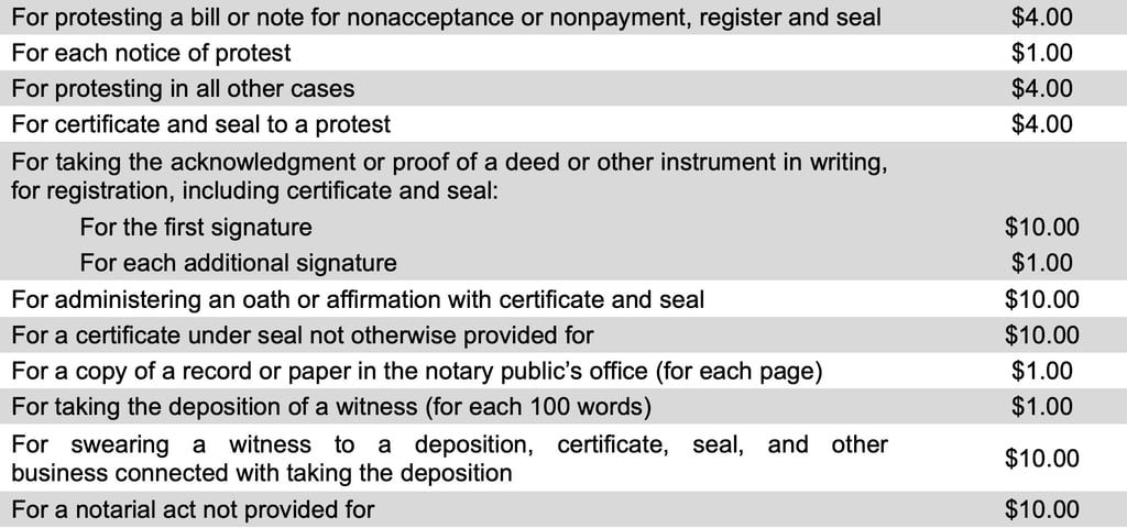 Section 406.024 of the Texas Government Code outlines the maximum allowable fees that may be charged by a notary public for notarial acts. These fees are charged by Serviam Preferred Solutions.