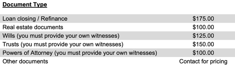 An invoice clearly outlining all fees due will be provided to you prior to your booking time. Payment is required in full upon receipt of the invoice and before a notary will service your booking. Payment can be made by cash, debit card, credit card, or Zelle.